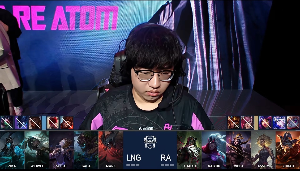 RA一上来就给了LNG一个下马威,第一局上路Gank+小龙拉扯+下路越塔三板斧直接打懵LNG,后续Naiyou一手芮尔各种花式开团帮助RA先驰得点,GALA的卡莉斯塔发挥极差,多次团战无作用暴毙,对线也没打出来。