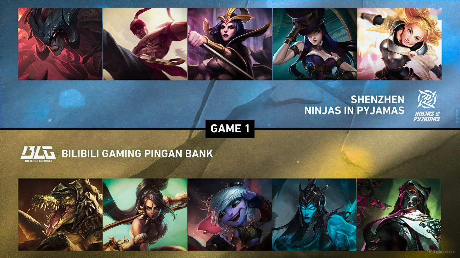 比赛前期BLG盲僧入侵野区,NIP放弃兵线去帮打野,BLG下路也赶往帮助盲僧,将NIP的打野与卢锡安击杀,NIP的下路直接崩掉,在之后的对线也被线杀一回,NIP下路彻底打不了。在10分钟的时候就被BLG下路俩人将下路推掉,随后12分钟BLG下路俩人在上路退掉NIP上路一塔,整个NIP前期因为下路的劣势导致全队三路受限。