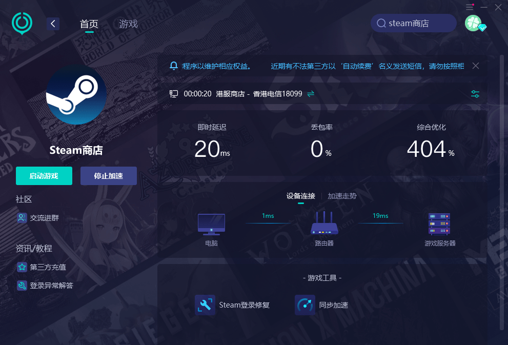 然后:点击即可优化网络,流畅解决steam错误代码e87问题
