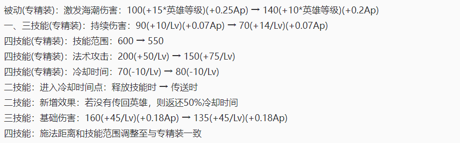 以上则是改动内容,专精装和非专精装都砍了几刀,使得她未必能维持T0的强度,所以,我并没有强推她。
