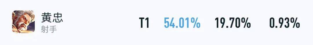 黄忠在变异重做后,大招多了一段位移机制,使得他的优先级一直在飙升,在巅峰赛里,黄忠更是以54.01%成功登顶榜首,这还是在19.7%出场率的前提下,属实有点离谱了。