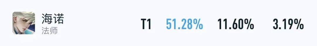 以上则是海诺在上周加强后,整体的巅峰赛数据变化,51.28%胜率+11.6%出场率,已经算是很不错的了,带个弱化走对抗路,就连姬小满都对他无可奈何。