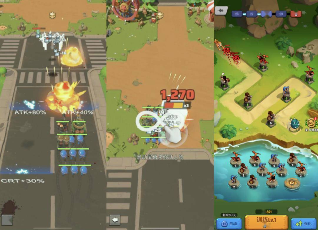 类似跑酷/射击的操作也好,塔防合成也罢,
