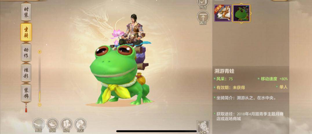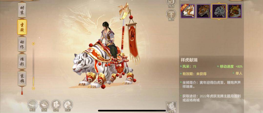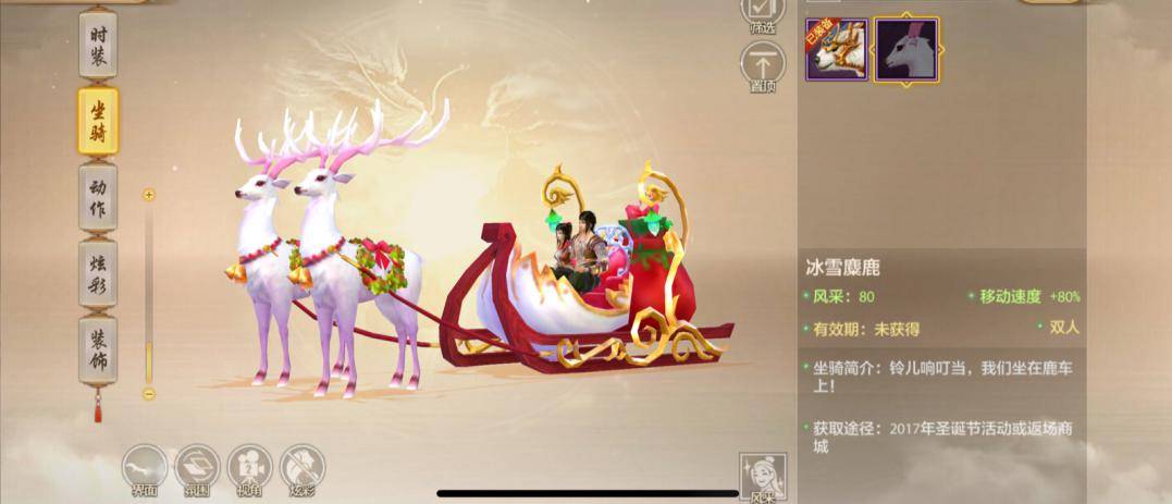 QQ萌萌的溯游青蛙与嘟嘟豚,圆滚滚的身姿是不是你的最爱?还有憨态可掬的雪人香车、仙气飘飘的冰雪麋鹿、凶猛又喜庆的祥虎献瑞,一共5款返场坐骑!骑着这些坐骑走上大街,绝对能成为人群焦点,还不快邀请你的心上人一起同乘同游?