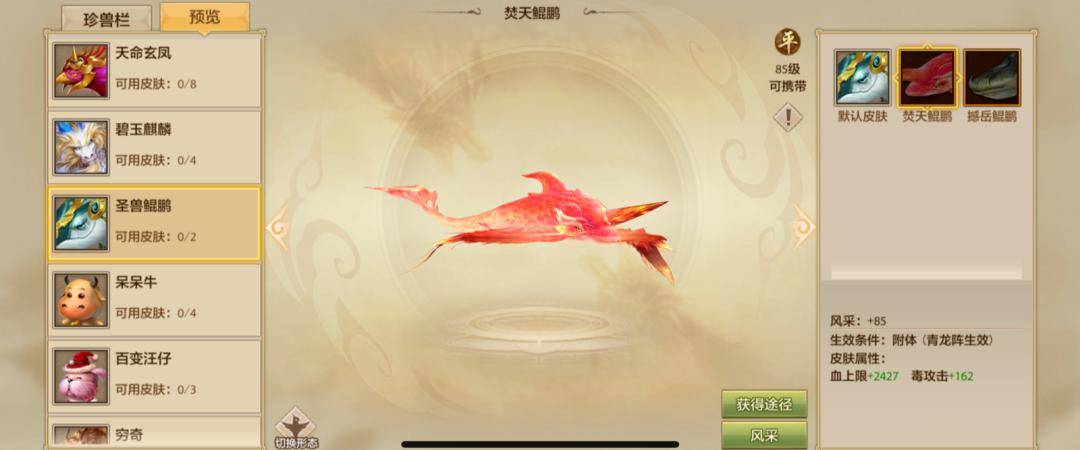 <左右滑动可查看更多珍兽皮肤>