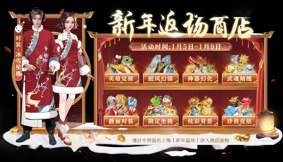 嗐,这点小愿望,老赵分分钟给大家实现!新年返场商店来袭,64款经典好物限时回归,不论是珍兽皮肤,还是坐骑时装,或是武魂精魄、神器幻化……各类宝物应有尽有,这次再也不会遗憾了!不仅如此,伴随着寒冷冬日,冰蚕宝宝也来为少侠们送上祝福了。稀有冰蚕宝宝珍兽蛋兑换即可领取,喜欢的少侠还请不要错过哦~