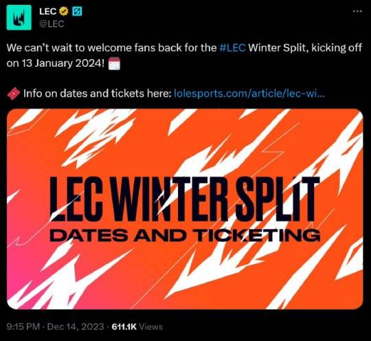 LEC冬季赛当下已经确定会在1月13日开赛,届时大家就能看到这支刚从次级联赛冲上来的队伍的成色了。