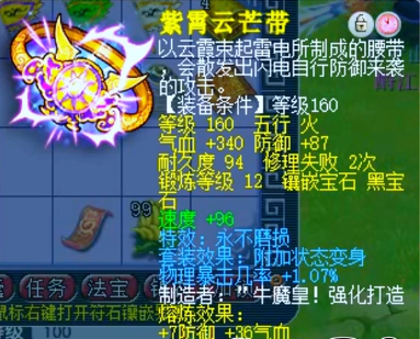 160级12锻不磨腰带,熔炼后气血376、防御94