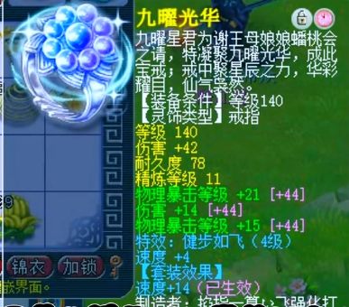 前排灵饰为140级戒指、140级耳饰,三伤害四物暴