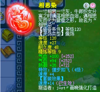 后排灵饰为120级佩饰、120级手镯,三防御三气血