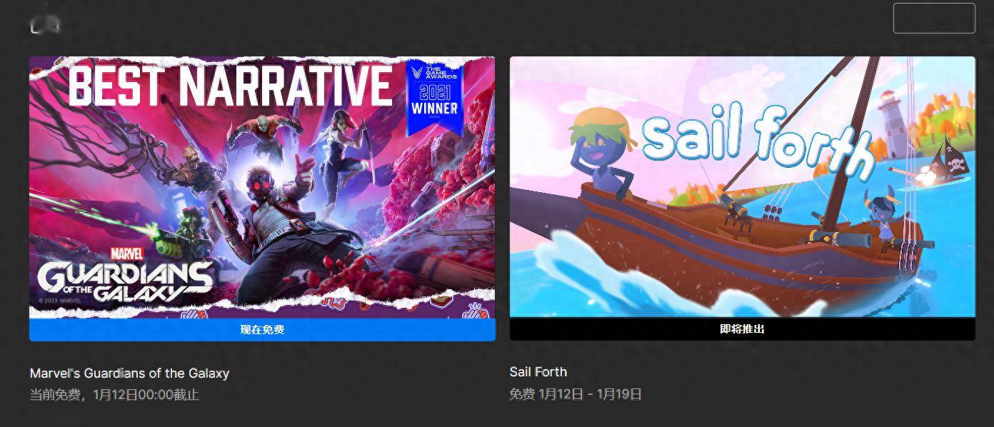 今日的Epic商店喜加一游戏为《漫威银河护卫队》,原价359元,截止至1月12日。