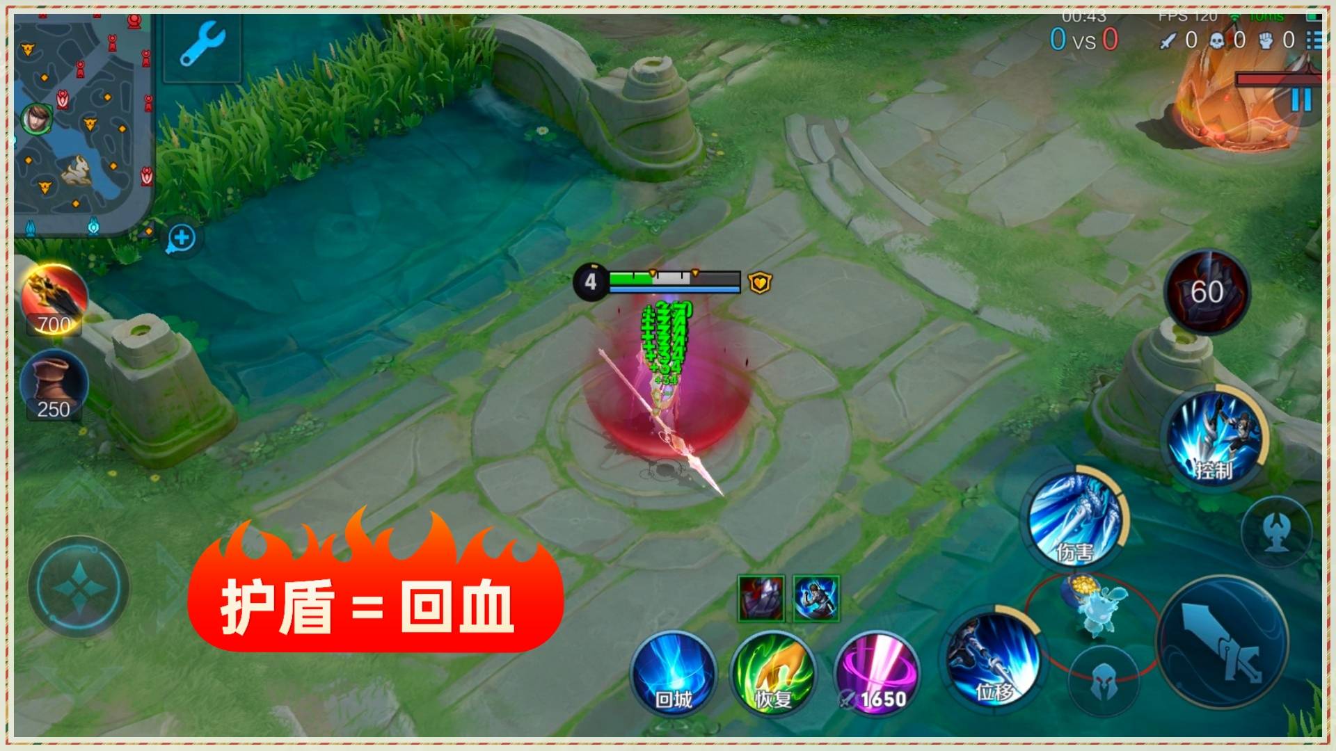 在我们血量值变低的情况下,我们的一技能的位移距离还会变远,即使很厚的墙体我们也能穿越。