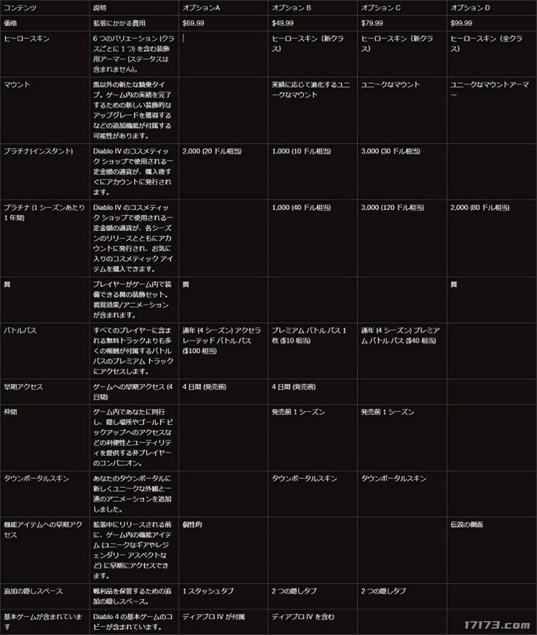 近日一张《暗黑破坏神4》DLC的各个版本的售价列表被曝出,而最高的一档DLC售价来到了99美元(约707元人民币)。可以看到包含了全部坐骑和时装的一档来到了99美元,此前暴雪也因皮肤和坐骑定价过高而引来了玩家们的吐糟。