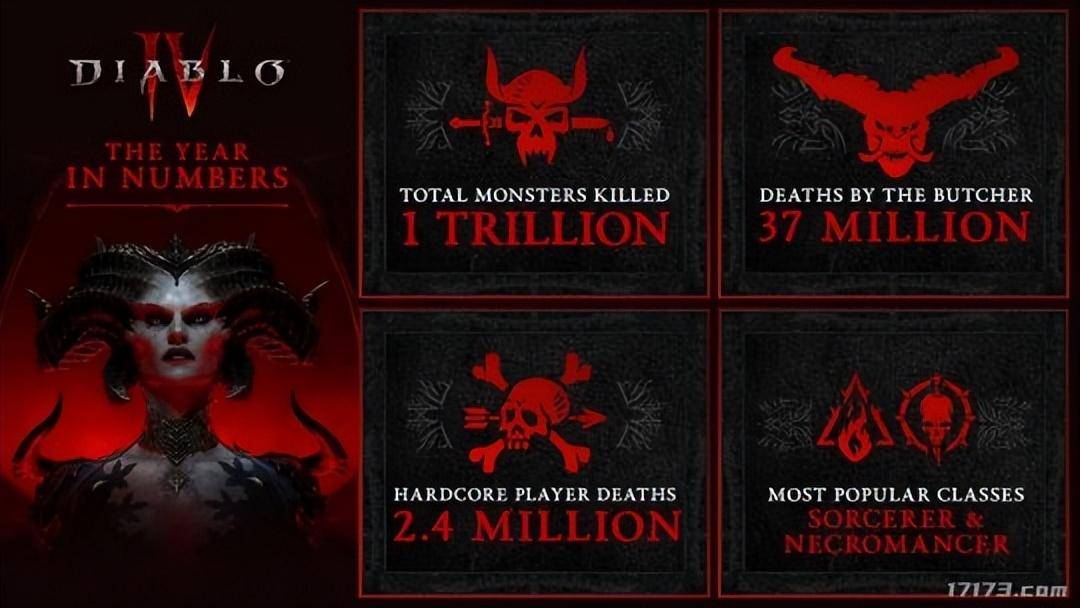 《暗黑破坏神》官方今日发布了玩家们2023年游玩《暗黑破坏神4》的各项统计数据。