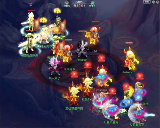 比赛第49回合,曲阜孔庙抓到机会,一波点掉了珍宝阁大唐。