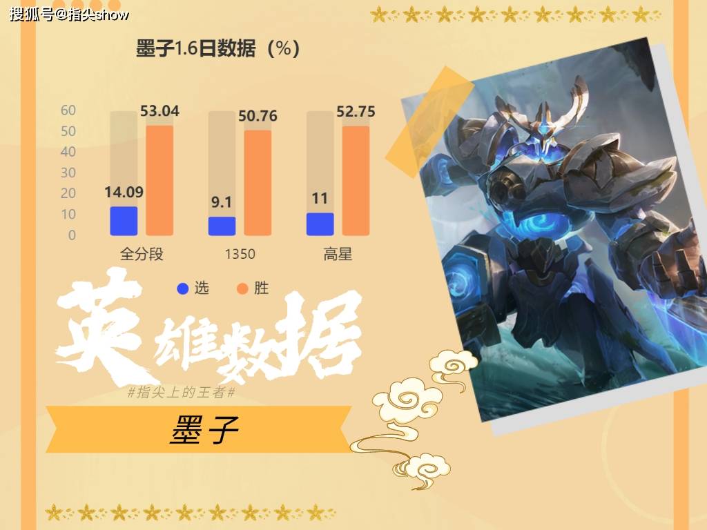 总结:不要再低估这个英雄了,上赛季我就推荐了好几次,如今看着这上涨的胜率,倍感欣慰,曾经中路墨子也算风光一时,持续削弱伤害后越来越难以发挥,走辅助流焕发第二春,大家就不要继续打击了,不妨给他们一个机会试试,换个视角想想,自己碰到墨子的时候也是很难受的吧。