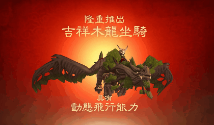 近年来,《魔兽世界》连续推出十二生肖主题的坐骑,去年是兔,今年是龙。吉祥木龙如其名,兼具树木的耐性与巨龙的优雅,具有蜿蜒滑行的骨架,可动态飞行,商城单独购买的售价为25美元。