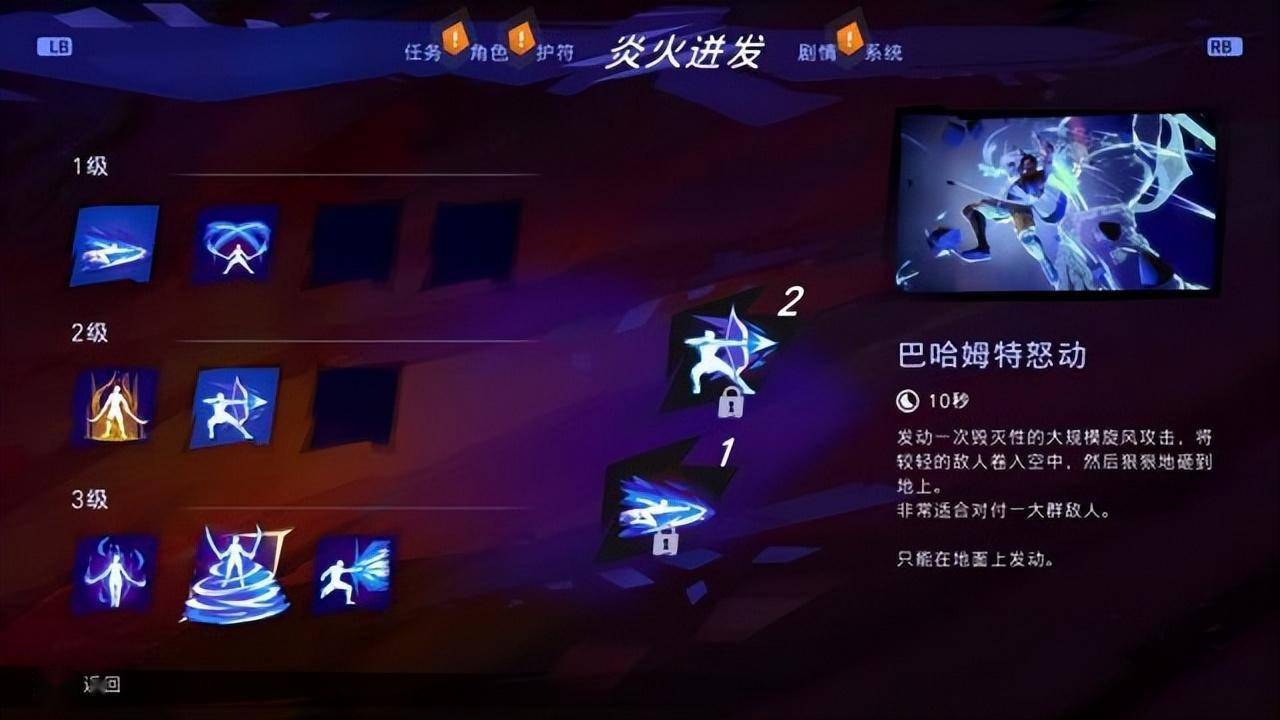 在常规的战斗方式之外,攒气还可以释放怒火迸发技能,游戏中我们最多可以积累3条怒气(攻击敌人增加,用特定护符挨打也增加),可以增加2种消耗从1到3不等的技能——这里我感觉比较好用的可能是最初解锁的1费突刺(廉价打硬直,如果是墙角壁咚还可打连击)和2费持续回血(增加容错)。