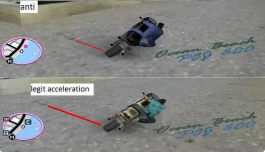 而在更早的时候,有人仅用4个小时就通关了《侠盗飞车4》,较之其他挑战者他大幅缩减了时间。同样是在“列文虎克”们的复盘中,大家大伙发现视频中的载具比平时要更快一些,摩托加速时的烟雾效果异常就是凭证。显而易见,这又是一场通过暗改数据完成的速通。