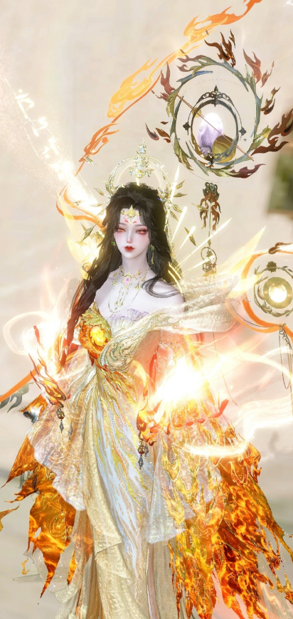 女款【曦照东晖】时装拍照自带氛围灯,即使是在光线很暗的环境里拍照,也能够拍出氛围感大片。如果搭配火武直接buff叠满,这不就是武魂真身嘛!