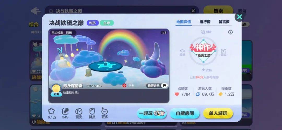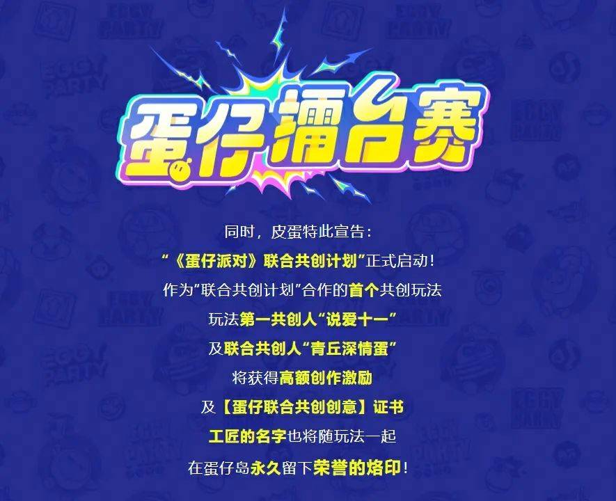 而另一位创作者“青丘深情蛋”则凭借作品《决战铁蛋之巅》获得了“联合共创人”的头衔,正是由于他在“十一擂台争霸赛”的基础上进行迭代,才有了如今更具对抗性和更多乐趣的1v1擂台玩法。