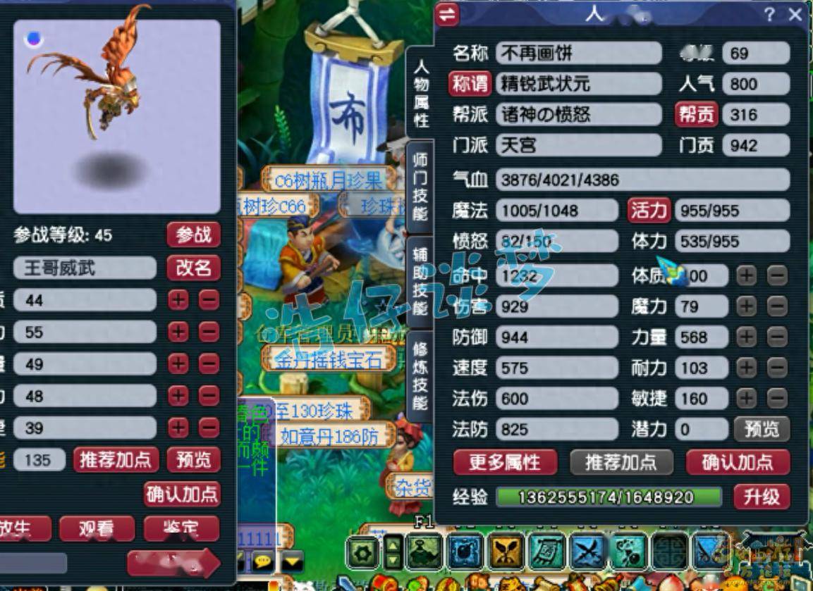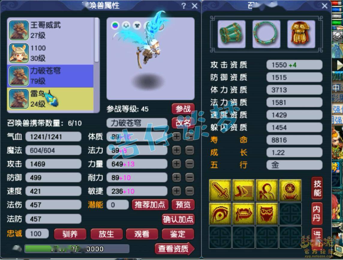 8技能敏攻善恶雷鸟人,这种宝宝打PK抗性有点欠缺,速度快容易被清!其他宝宝他都放到仓库了,没有过多的展示!