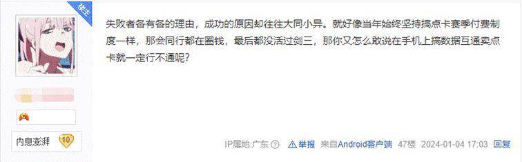 剑网3坚持不做手游,反而做起了手端互通,这种行为看似“很傻”,有钱都不挣,但对剑网3而言这是最适合自己的路,14的运营,让剑网3明白自己的基本盘在玩家,如友商一般做手游固然能捞上一笔,但这却是在损害IP的生命力,也是对玩家的不负责,这必然不是剑网3想要的。反其道行之,点卡收费加手端互通,将重心放在服务玩家身上,是剑网3为自己选择的一条“通天之路”。