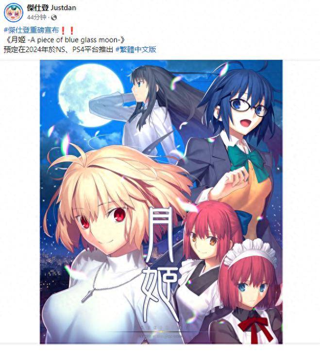 1月16日,发行商杰仕登宣布《月姬:重制版》中文版将于2024年年内发售,登陆PS4和Switch。《月姬:重制版》官方名称《月姬 -A piece of blue glass moon-》,是TYPE-MOON重制《月姬》的游戏企划的前半部分,日版已于2021年8月发售。
