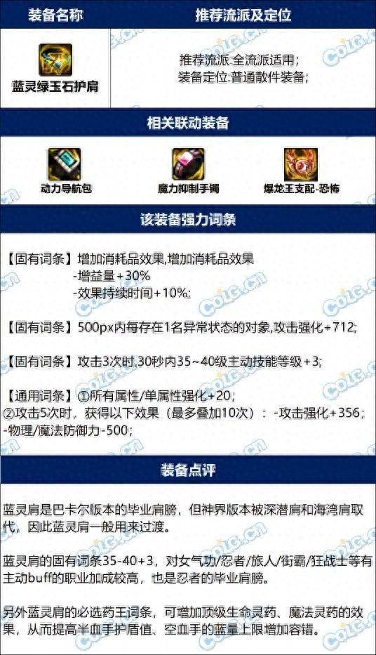 dnf蓝灵绿玉石护肩改版后装备流派定位、联动装备、完美词条可以参考下图,希望对大家有所帮助。