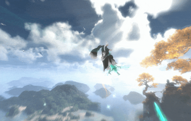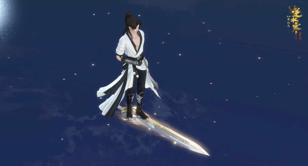 官方此前放过《逆水寒》2.0的一个实机,展示了玩家上线之后登上天极岛,就可以人手一把宝剑,开启全民御剑飞行时代。