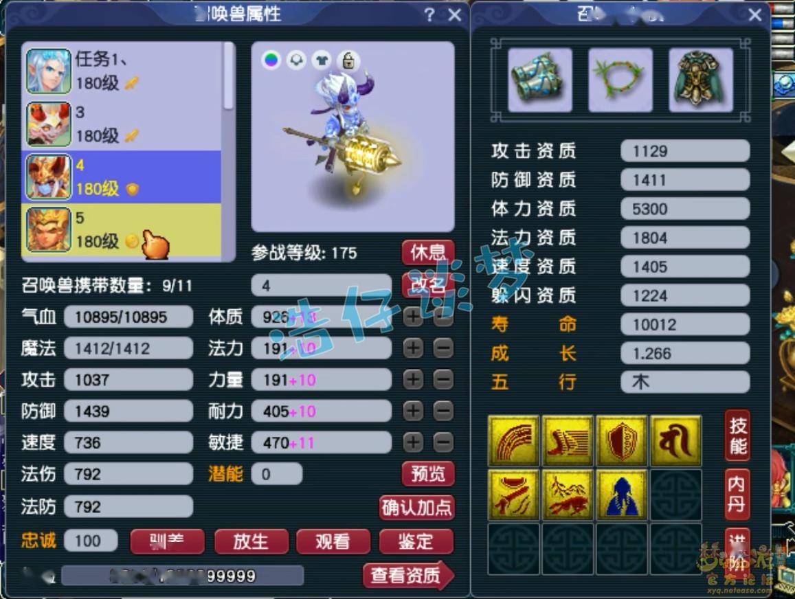 8技能血攻善恶魔化童子,这只宝宝就偏向于打PK了,比较高端!
