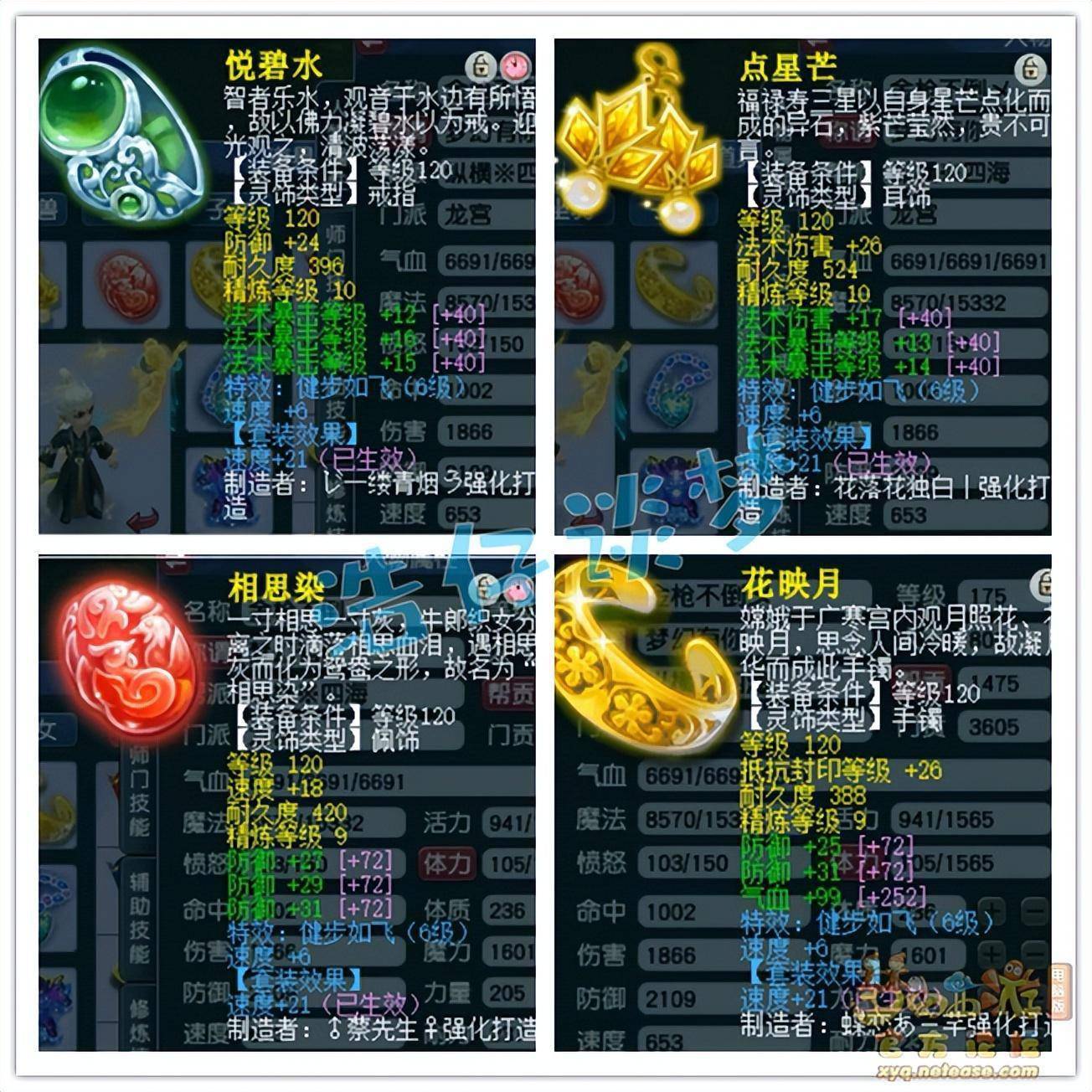 戒指下排三法暴,耳饰下排双法暴一法伤,佩饰下排三防御,手镯下排双防御一气血,特效都是6级健步如飞,就是为任务而准备的!