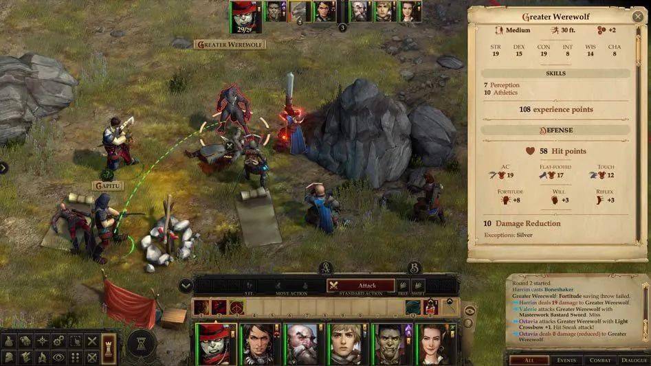 我们给自己定了两个目标,一是在电脑上再现纸笔 RPG 的体验,二是再现传统 CRPG 硬核佳作的荣光,毕竟我们就是在这种游戏氛围里长大的。从这两方面看,我们成功了,硬核玩家群体也给出了不错的反馈,但我们也明白,《开拓者》(Pathfinder)[4] 的规则体系太过庞大,不熟悉桌游的玩家可能会感到棘手,玩得云里雾里。