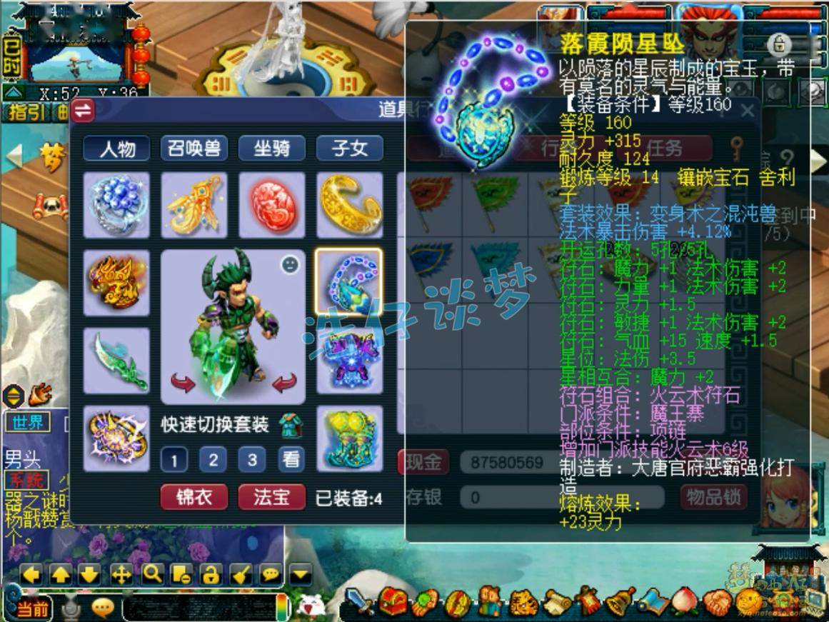 160级混沌兽套项链,附加法术暴击伤害+4.12%,熔炼后初灵254,打了14锻舍利子!