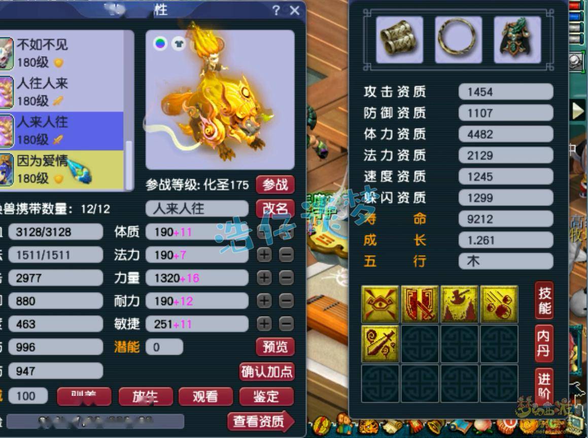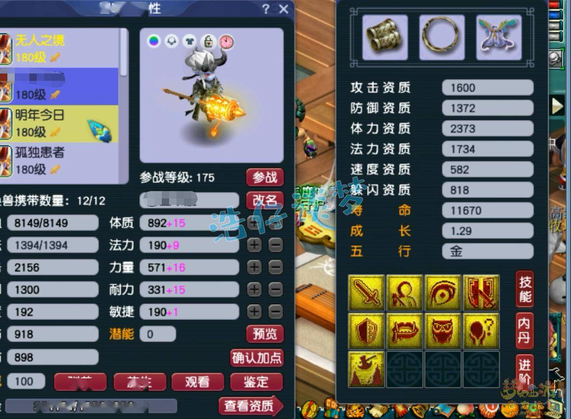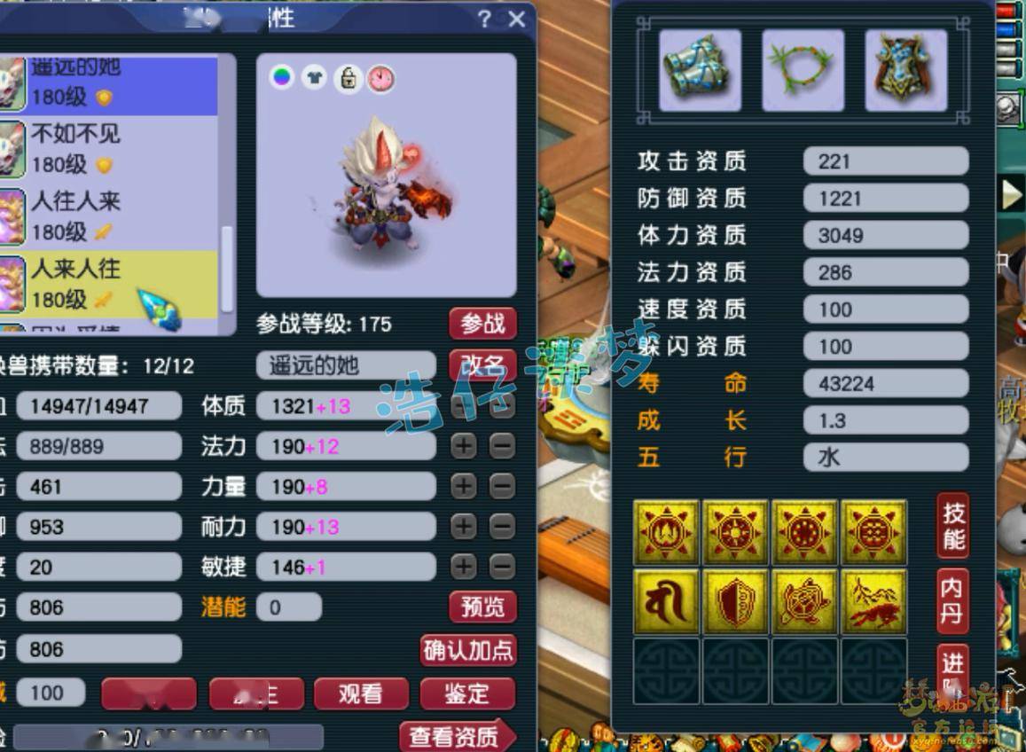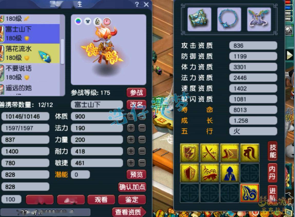 8技能净台龟速血宠魔化童子,成长资质很不错,套装带的是高隐身!
