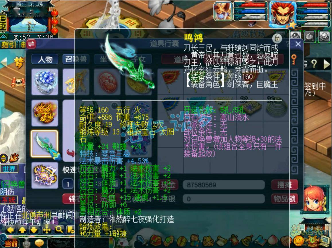 160级琴音三叠武器,附加法术暴击伤害+4.53%,熔炼后力敏双加55,打了13锻太阳石!