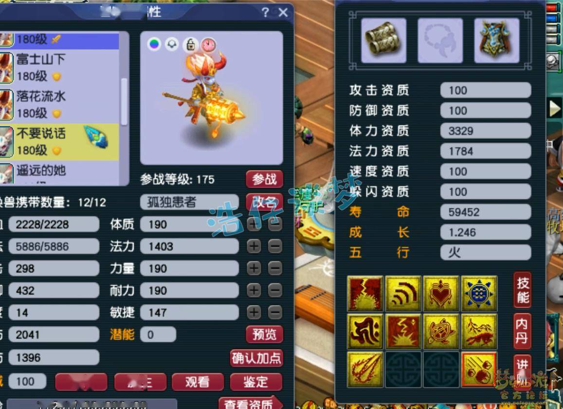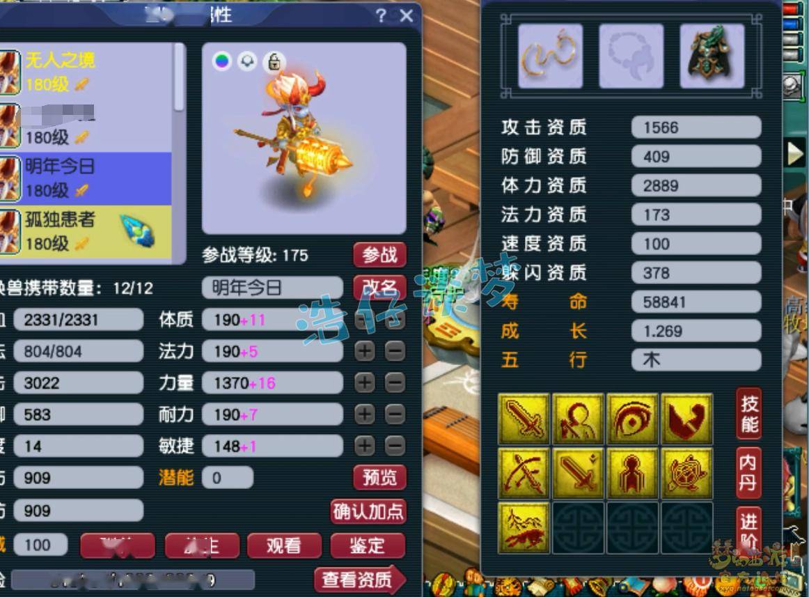11技能高连血攻童子,攻资和防资都养出了加号,1.3极限成长,非常不错!
