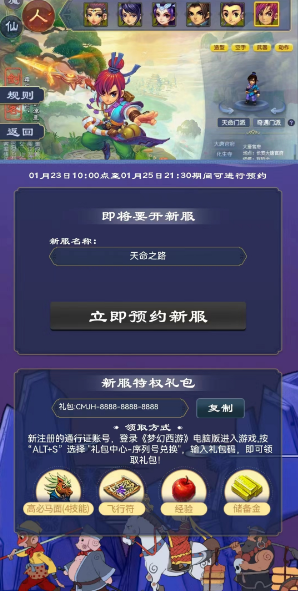 在服务器开放的30天内,随时可登录梦幻西游官方论坛报名参加年/月卡免单活动,也许幸运儿就是你!开局还有强力礼包,领4技能高必马面等好礼。