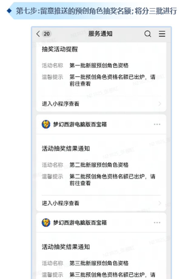 新服预创角色资格将分三批发放,开启预创角色资格中奖结果订阅通知后,抽奖结果会自动推送。