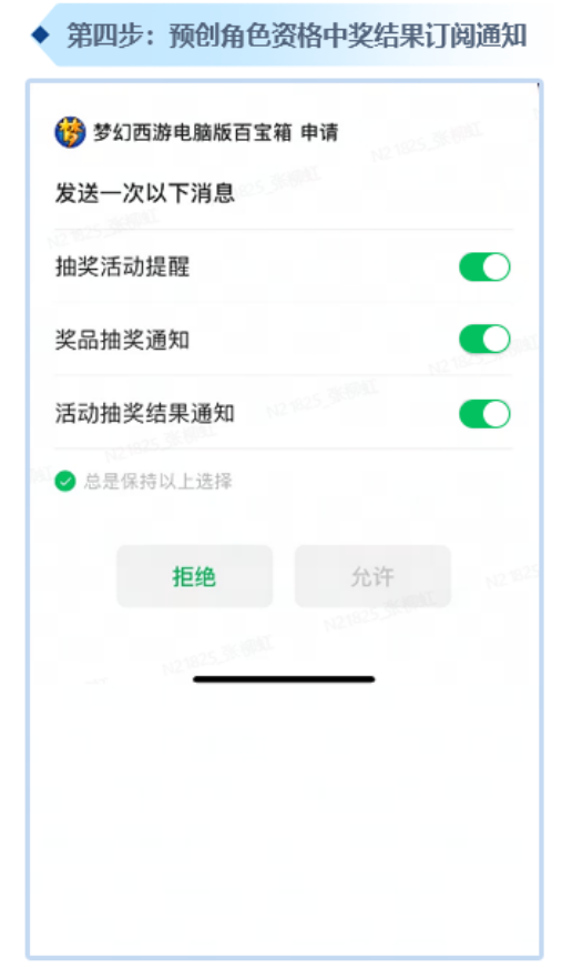 进行新服预约后,开启预创角色资格中奖结果订阅通知。