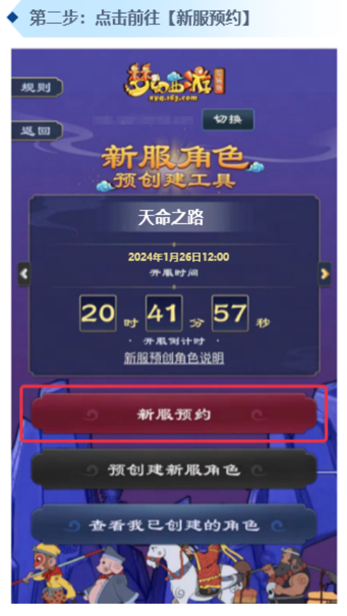在【新服预约】界面,选择新服【天命之路】,进行预约。预约时间为1月23日10:00至1月25日21:00。