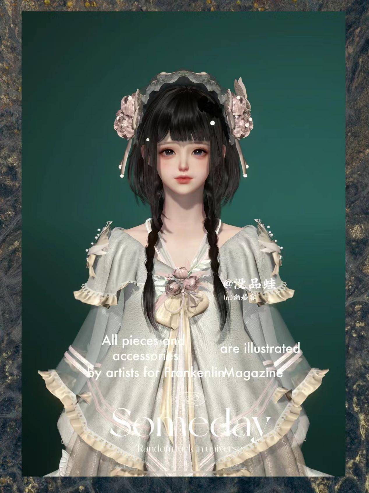 这个花环头饰给足了氛围感,大家也可以自由拉条试试。这里给一个很像去年火爆的“簪花”造型,虽然时装是花团锦簇的,但是给人的气质感觉确实单纯可爱的,这样的反差感也很让人心动!