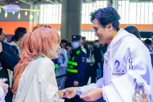 在27日,几位特别嘉宾——知名声优赤羽根健治、植田佳奈,游戏第2部开发总监叶良树,也出现在现场和玩家们见面。在见面会正式开始前,叶良树还前往摩根王座场景处与玩家握手问好,并赠送玩家无料周边。