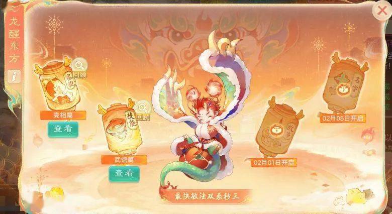 1)“龙醒东方”剧情共四个篇章,本周将揭秘第三、四章。有关春节召唤兽的情报将一一在少侠面前铺展;