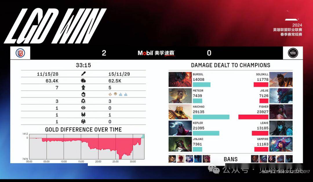 先简单回顾一下这场BO3,第一局前期对线期EDG的节奏还不错,在上路和下路都拿到了击杀,但是中期haichao妖姬开始疯狂带线,EDG这边无法处理,而LGD这边也频繁失误,导致双方都无法突破。但是LGD两次打大龙逼团,一次拿下大龙,还有一次包夹成功,最终拿下第一局的胜利。首局EDG可以说是在运营方面败给了LGD,其实LGD的运营问题已经很大了,但是EDG更差一些,火龙魂都打不过也是离谱。