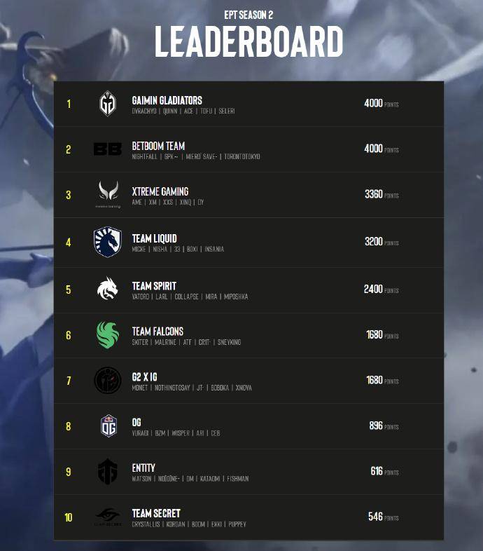 预选出线:G2×iG、Tundra、Spirit、Klim Sani4、Falcons、Talon、SR、Heroic