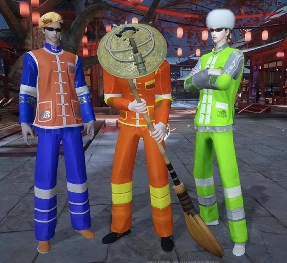 当然,除了耍帅,这套衣服还能被玩出不一样的感觉。有销冠将衣服染成了橙色,直接爆改工服!戴上笠帽拿起扫帚,直接就能在大马路牙子上干活儿了!改成蓝色你就是饱了吗外卖小哥,守护玩家们的胃。荧光绿更牛了,路上要是太多坐骑堵住了还得靠这位哥出手指挥。总之,哥几个白天勤勤恳恳当帕鲁为大宋的卫生作出贡献,晚上同一套衣服染色一变直接成为最帅的大宋摇子。