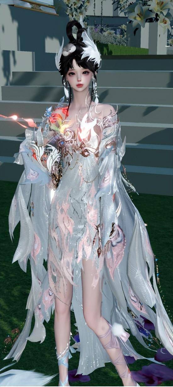 白染后的【朱焰羽裳】多了几分温婉气质,粉白相间的配色显得格外小清新,搭配一张可爱捏脸简直就是清纯小白花,楚楚动人的样子让人不由心生怜爱。