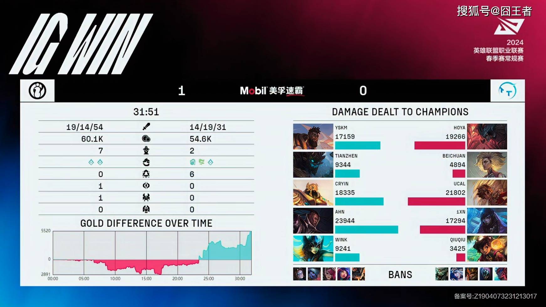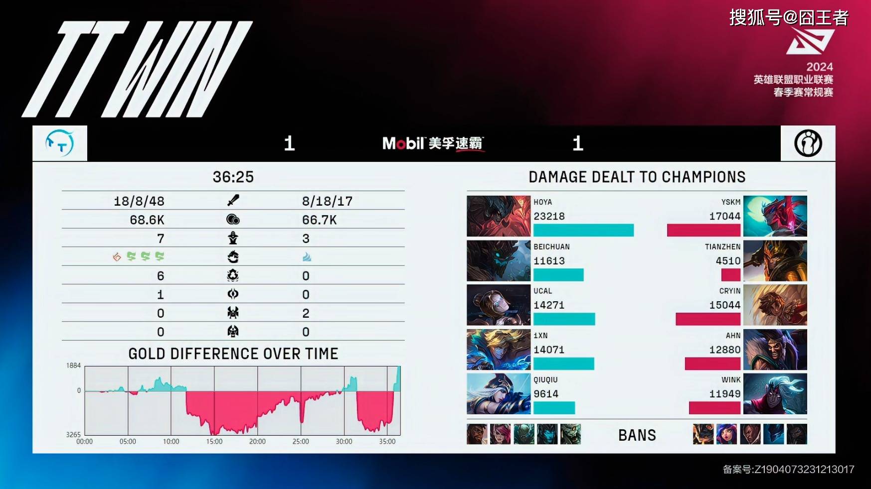 开赛前,IG三战两胜一负,TT三战一胜两负,两队的差距不大。那么此战的胜负,将决定两队,谁能更进一步,又或者是两队一起跌落到东部赛区!