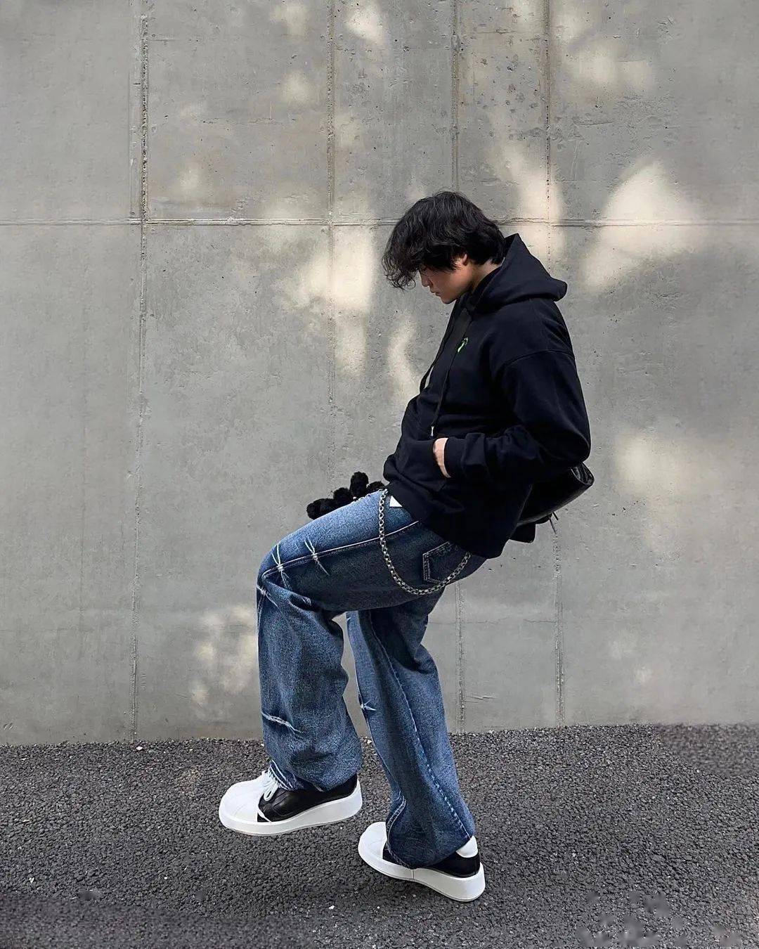 除此之外,很多玩家会选择直筒或者微喇的裤型将这些靴款藏在裤管里,以「点缀」的方式,让靴款成为整个造型的点睛之笔。